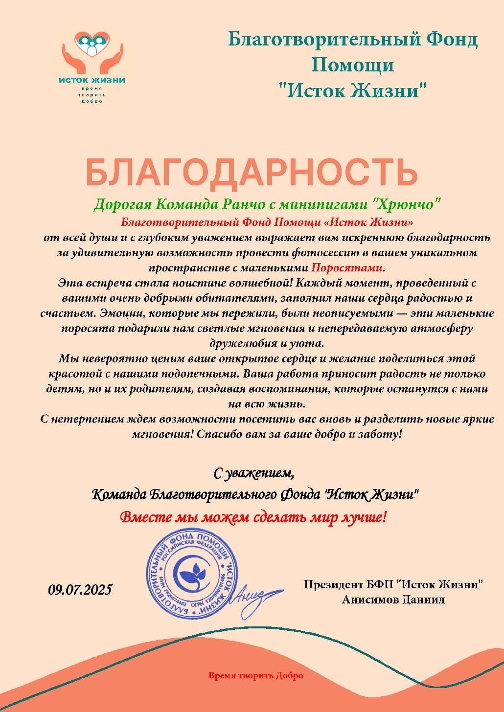 ❤️Большое спасибо БФП "Исток Жизни" и руководству Ранчо с минипигами ”Хрюнчо“. Детская комната СПБ за то, что всё было подготовлено на высшем уровне. Благодаря вашему искреннему энтузиазму и профессионализму наши дети и их родители смогли окунуться в мир удивительных эмоций и незабываемых впечатлений. Замечательная фотосессия, организованная с такой любовью, навсегда останется в наших сердцах!